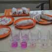 3 . 将市场、超市买回的猪脚、鸡爪、白百叶、魔芋、鱿鱼分别浸泡在少许水中,浸泡10分钟后取浸泡液于小杯子中,每个样品取两份浸泡液,分别滴入酚酞试剂1、酚酞试剂2、观察颜色有无变化。结果发现白百叶、魔芋丝、猪脚浸泡液均变成了粉红色;其他没有变色。