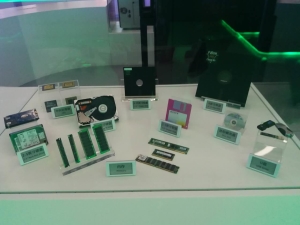 由固态电子存储芯片阵列而制成的硬盘是电脑主要的存储媒介之一。1956年,IBM 350 RAMAC是现代硬盘的雏形,它相当于两个冰箱的体积,不过其储存容量只有5MB。随着存储设备及存储技术的更新换代,硬盘以体积小,容量大、速度快方向快速发展,以1T奔腾750硬盘为例,读取速度可达2.5GB(千兆字节)/秒,写入速度为1.2GB/秒。