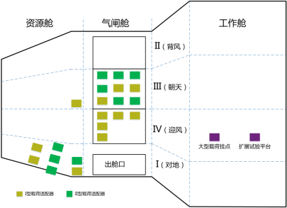 为利用空间站舱外的空间环境开展实/试验,空间站密封舱外设置有暴露实验平台和大型载荷挂点以及扩展实验平台挂点。“问天”实验舱有数十个舱外载荷适配器,支持开展空间天文与天体物理、空间物理与空间环境、以及有迎风面需求的暴露实验等方向的相关研究。
