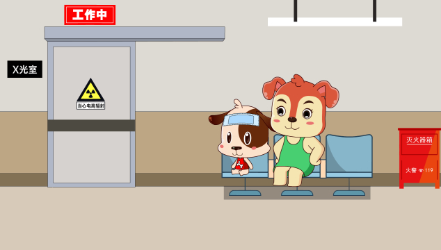 开开身体不舒服,妈妈在医院陪着开开等待做检查。突然开开看到检查大门上有一个前不久刚看过的核辐射标识,有些胆怯地问妈妈:“妈妈,为什么这个检查的大门上有个核辐射的标志呀,那我不是要被核污染了?我听说核污染会引发很多疾病,嘴歪眼斜……”