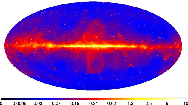 另外还有10% 的辐射源暂时无法分类,但一些科学家认为其中有理论物理学领域所期待的天文观测证据。例如,关于暗物质是否存在的问题。根据理论,暗物质粒子湮灭时释放的光子正好在费米望远镜的观测范围之内,如果可以得到确认,那么这将是引力效应之外的新证据。